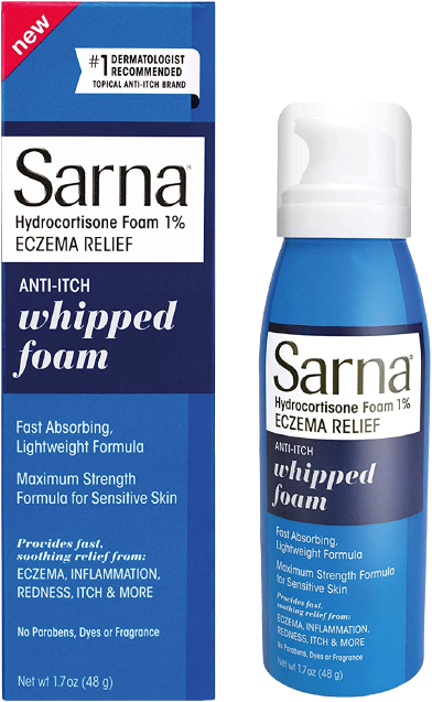 Sarna Hydrocortisone Whipped Foam delivers fast, soothing relief to itchy, eczema-prone skin. This lightweight foam absorbs quickly and is the maximum strength available without a prescription. This itch-reliever is strong enough for adults yet gentle enough for sensitive skin and children with no parabens, dyes or fragrances.